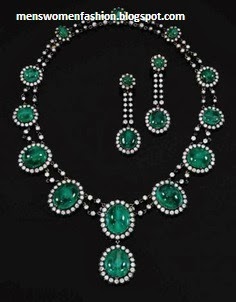 a Fashion jewellery by american emerald and diamond necklace set and earrings jewellery gems stone jewellery